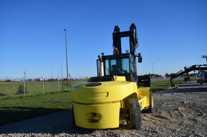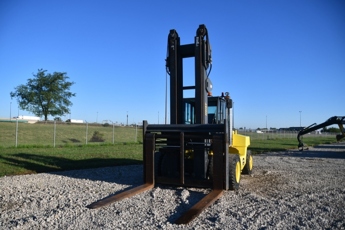 Cab, Cummins QSB6.7 160HP diesel, 36,000 lb. capacity @ 48" load center, 216" 2 stage mast, 8' forks, 96" carriage, hydraulic fork postiioners, 12.00 x 20 pneunatic tires, 66,400 lbs. (Stock #10392)