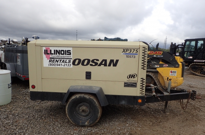 2012 Doosan XP375WJD Air Compressor : RENTAL UNIT ONLY - CALL FOR RENTAL RATES. 375 CFM, 125 psi, Deere 4045HF 125HP Tier 3 diesel, H78-15ST tires, pintle hook, 4,618 lbs. (Stock #10573)