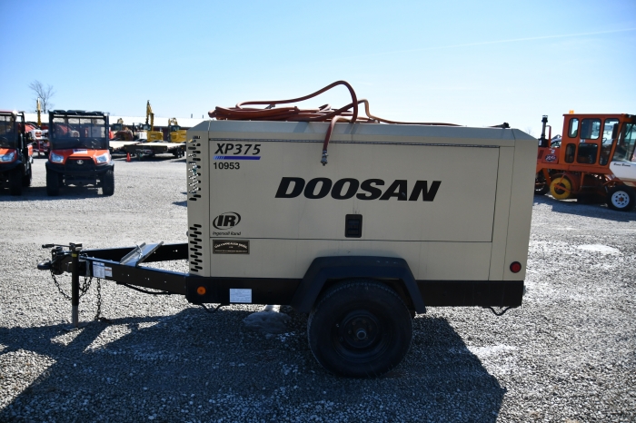 2012 Doosan XP375WJD Air Compressor : RENTAL UNIT ONLY - CALL FOR RENTAL RATES. 375 CFM, 125 psi, 4045H John Deere diesel, H78-15ST tires, pintle hook, 4,618 lbs. (Stock #10953)