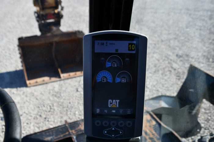 Cab with A/C, wheeled, Cat 6.6 173HP diesel, standard boom, 9' 6" stick, 20' 7" dig depth, 11.00-20EM tires, auxiliary hydraulics, 4 outriggers, anti drift valves, adjust. hydraulic sensitivity, roading pkg., Cat variable pin grab hyd. coupler 78" ditching bucket, window guard, 47,400 lbs. (Stock #11241)