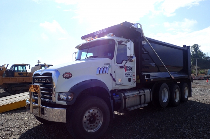 RENTAL UNIT ONLY - CALL FOR RENTAL RATES. Mack MP-8 445HP T4f diesel, Mack 10 speed, 20,000 lbs. front axle, 44,000 lbs. rear axle, 64,000 GVRW, 29,400 EW, 227" WB, 425/65R22.5 front tires 11R22.5 rear tires, air lift 3rd axle, double frame, dual steering boxes,dual lockers, Mack camelback suspension, 16' Oxbox. 21 yard capacity, electric tarp, engine brake, cruise control, AC, heated mirrors. (Stock #11309)