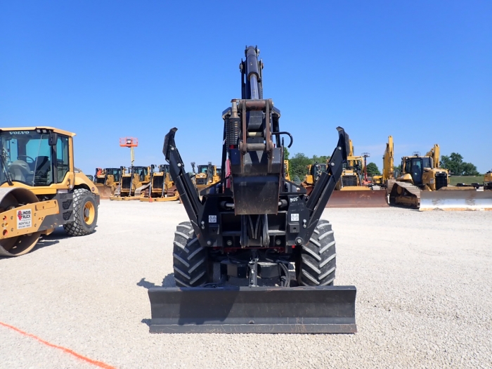 Canopy, Cummins QSB4.5 T4i 121 HP diesel, 4 speed hydrostat transmission, 4 wheel steer, 38x18.00-20 tires, 72" trench depth, 8" width rock teeth and dirt cups, crumber, 762 backhoe attachment, 9' 3" dig depth, 18" bucket, 6-way 84" blade, 18,000 lbs. (Stock #11552)