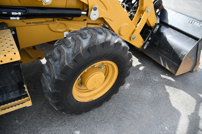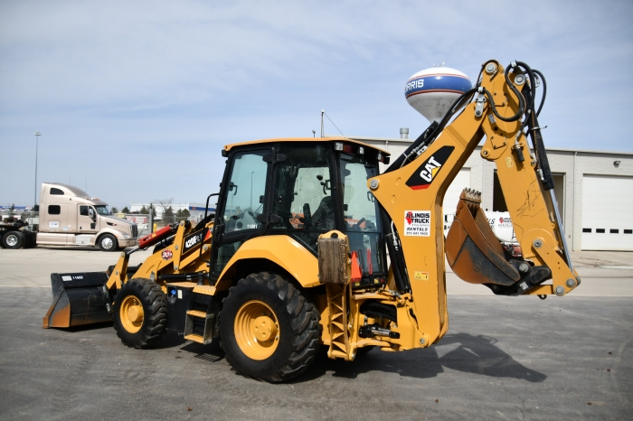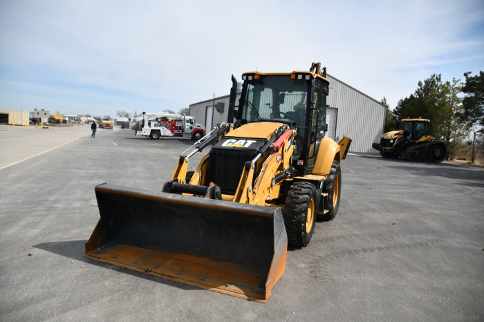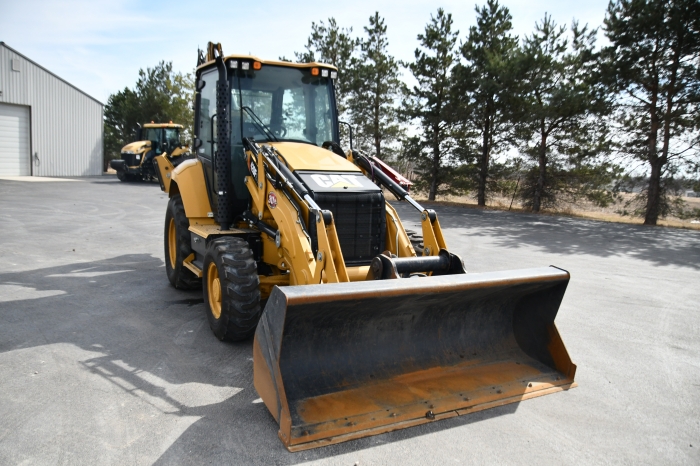 RENTAL UNIT ONLY - CALL FOR RENTAL RATES. Cab with A/C, Cat C4.4DITA 100HP Tier 4 diesel, 4WD, shuttle shift trans., F-N-R thumb control, extenda-hoe, 21' 8" dig depth, rear auxiliary hydraulics, ride control,1.31 yd. quick couple front bucket, front loader aux hydraulics, front loader electrics, flip over stabilizers, stabilizer guards, auto up stabilizers, pilot controls, pattern changer, 12.5/80-18 frt. tires, 19.5x24 rear tires, manual rear coupler, 24" rear bucket (Stock #11691)