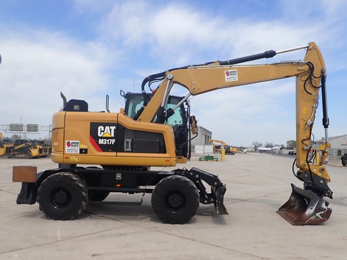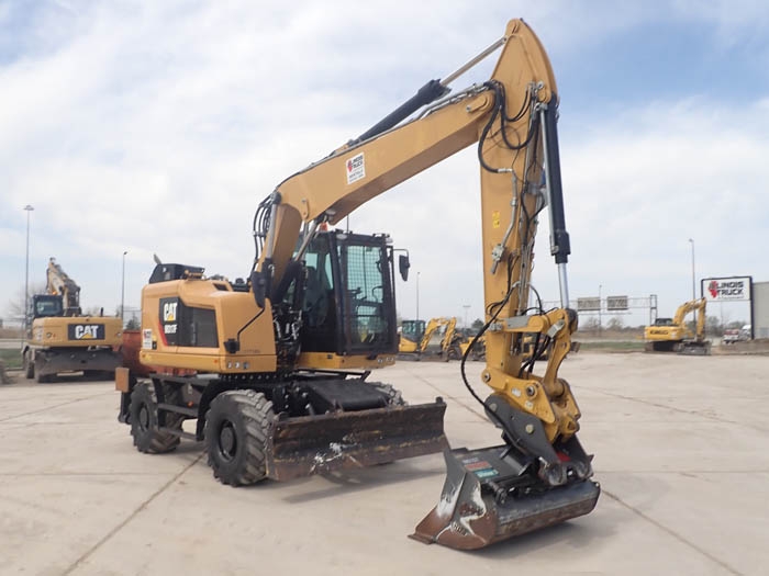RENTAL UNIT ONLY - CALL FOR RENTAL RATES. Cab with A/C, wheeled, Cat 4.4 150 HP T4f diesel, VA boom, 8' stick, 18' 7" dig depth, 445/70R tires, auxiliary hydraulics, 4 outriggers, anti drift valves, adjust. hydraulic sensitivity, roading pkg., Cat variable pin grab hyd. coupler pattern changer, 39,000 lbs.
