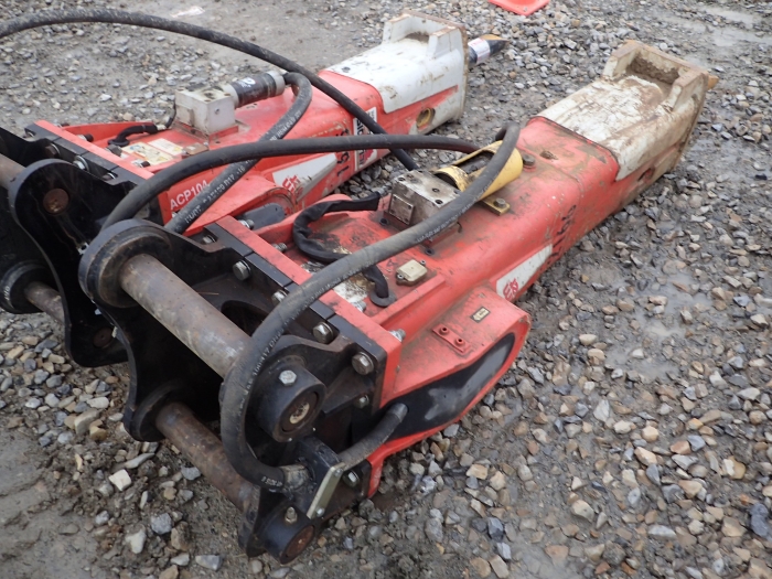 3,500 lbs. energy class to fit Kobelco SK210 or SK235 excavator, 430-790 bpm, 32-48 GPM, 35,300-57,300 carrier class, 2,770 lbs. Includes Ram Data Monitor, mounting cap, hoses, and Breaker Lube System. (Stock #ACP005)