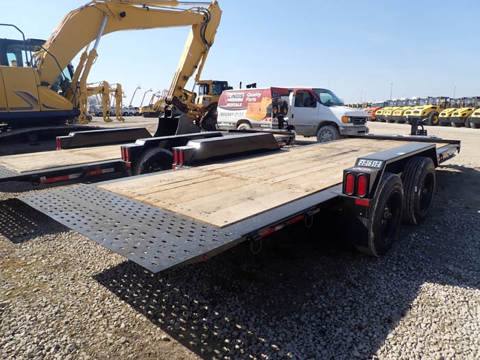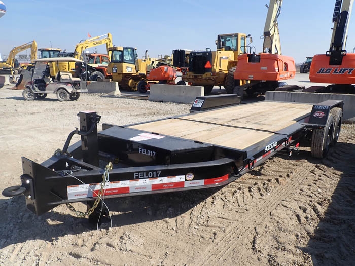 RENTAL UNIT ONLY - CALL FOR RENTAL RATES. 18,400 GVWR, 14,150 lb. capacity, 81" wide tilt deck, 20' long (16' tilt & 4' stationary), 8,000 lbs. torsion axles, ST215/75R17.5 tires, oak 2' deck, 10 D rings, LED lights, battery, pintle eye, tool box. (Stock #FEL017)