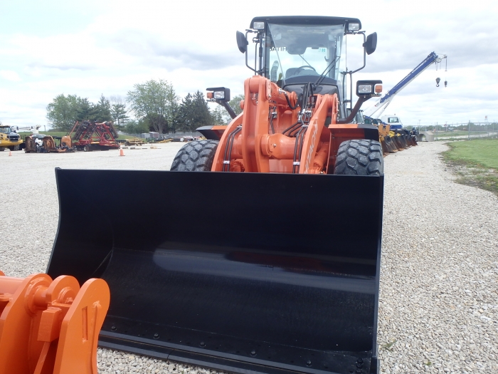Cab with A/C, Cummins QSB6.7 173HP T4 diesel, JRB hydraulic coupler, 3.4 yard., JRB bucket, single lever multi-function grip with F-R direct switch, ride control, optional heavy counterweight, 20.5R25 tires, limited slip F/R diff., fuel efficient mode switch, work mode selector, fenders, turn signals, heated mirrors, block heater, back up camera, 32,500 lbs. Warranty 2,000 hrs. or 10/27/21. (Stock #HIT127)