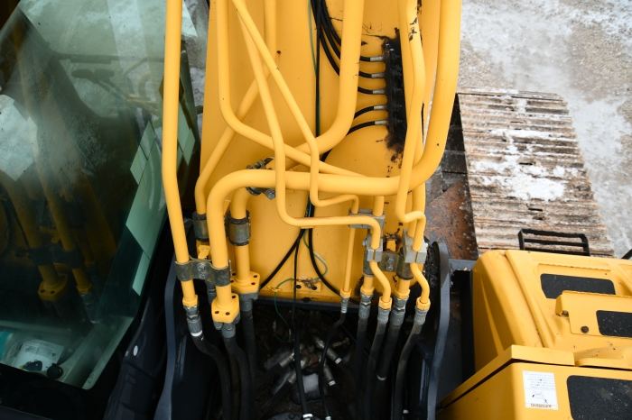 RENTAL UNIT ONLY - CALL FOR RENTAL RATES. Cab with A/C, Hino J05E 157HP Tier 4 diesel, 31.5" pads, 9'9" stick, 23'0" dig depth, Rotational 2 way w/hand control, pattern changer, belly pan, 59,300 lbs. (Stock #KOB228)