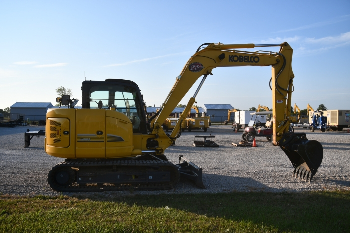 RENTAL UNIT ONLY - CALL FOR RENTAL RATES. Cab with A/C, Isuzu AU-4LE2X 55HP Tier 4f diesel, integrated noise dust reduction system (INDR), 17.5 rubber tracks, 7' stick, 14' 8" dig depth, 8' pushblade, swing boom, 1 & 2 way aux. hydraulics, pattern control, additional counterweight, 18,700 lbs. Warranty 3,000 hr. or 12/8/20. (Stock #KOB336)