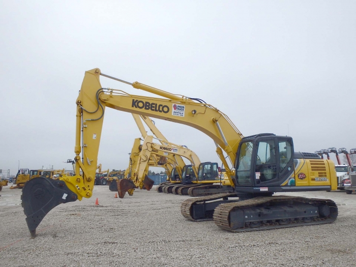 RENTAL UNIT ONLY - CALL FOR RENTAL RATES. Cab with A/C, HINO J05EUN-KSSD 176HP T4f diesel, 31.5" pads, 9' 9" stick, 21' 9" dig depth, 1-2 way aux. hand control hydraulics, pattern control, 57,300 lbs. Warranty 3,000 or 8/21/21. (Stock #KOB409)