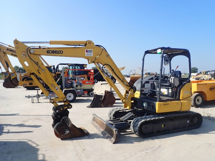 RENTAL UNIT ONLY - CALL FOR RENTAL RATES. Canopy, Yanmar 4TNV88C 37.4HP Tier 4 diesel, 5' 6" stick, 12' 10" dig depth, 16" rubber tracks, 1-2 way, aux. hydraulics, 6' 5" hydraulic 4 way angle push blade, swing boom, additional counterweight, pattern control, 2 speed, travel alarm, 12,295 lbs. (Stock #KOB471)