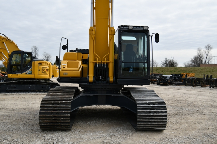 RENTAL UNIT ONLY - CALL FOR RENTAL RATES. Cab with A/C, Hino J08EVV 252HP T4f diesel, 31.5" pads, 25 10" stick, 63' 1" digging reach, 48' 10" dig depth, pattern changer, air ride heated suspension seat, belly pans, work lights, 77,500 lbs. (Stock #KOB512)