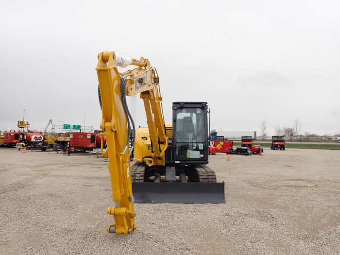 RENTAL UNIT ONLY - CALL FOR RENTAL RATES. A/C, Yanmar 4TNV98CT 70HP T4f diesel, integrated noise dust reduction system (INDR), 17.7" rubber tracks, 7' stick, 14' 7" dig depth, 8' pushblade, swing boom, 1 & 2 way aux. hydraulics, pattern control, work lights, belly pans, air ride and heated suspension seat, 19,270 lbs. (Stock #KOB532)