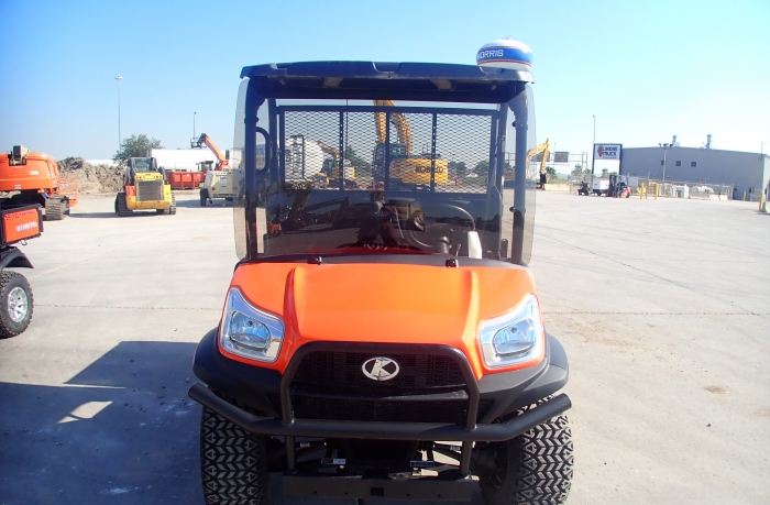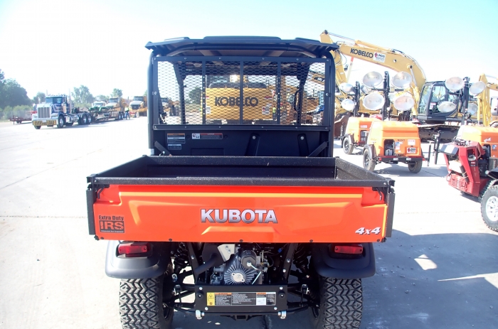 RENTAL UNIT ONLY - CALL FOR RENTAL RATES. Canopy, Kubota D1105E-E4-UV diesel, 24.8HP, variable hydro transmission, Hi-Low Range Shifter, 4WD, 25 x 10-12 tires, power steering, diff lock, hydro lift dump box, front windshield, canopy cover, 2,061 lbs. (Stock #KUB030)