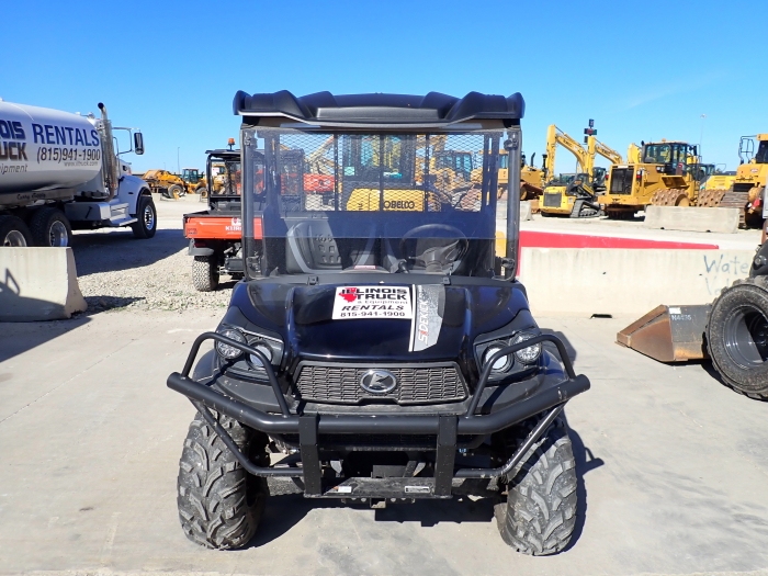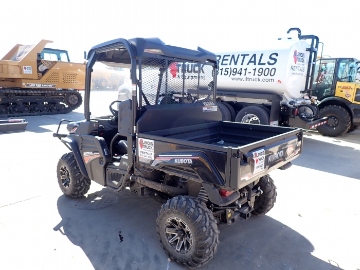 RENTAL UNIT ONLY - CALL FOR RENTAL RATES. Canopy, Kubota DOHC gasoline, 48HP, variable hydro transmission, Hi-Low Range Shifter, 4WD, 25x10-12 tires, power steering, 2 seats, diff lock, lift dump box, front windshield, canopy cover, 1,761 lbs. Warranty until 12/3/21. (Stock #KUB033)