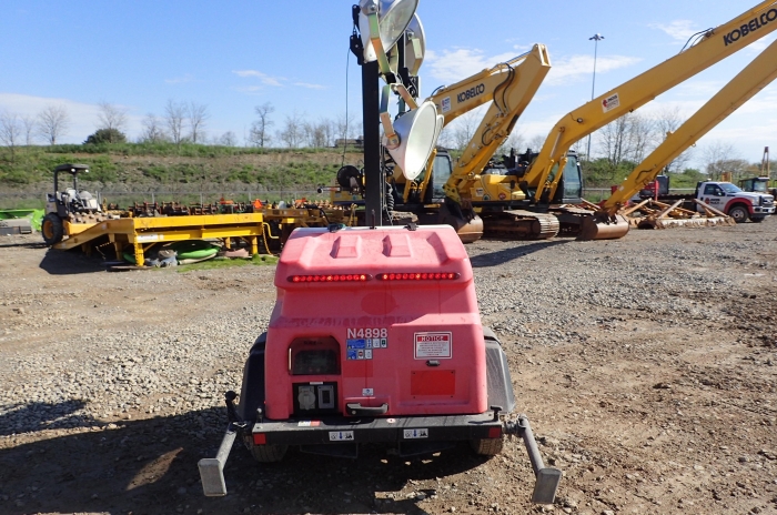 Mitsubishi L3E 12.2HP T4f diesel, Marathon 6KW single phase generator, auto start up, 4 light fixtures, 42 gallon fuel tank, 90 hour run time, 440,000 lumen, 360 degree mast, 175/80D13 tires, pintle eye, 1,500 lbs (Stock #N4898)