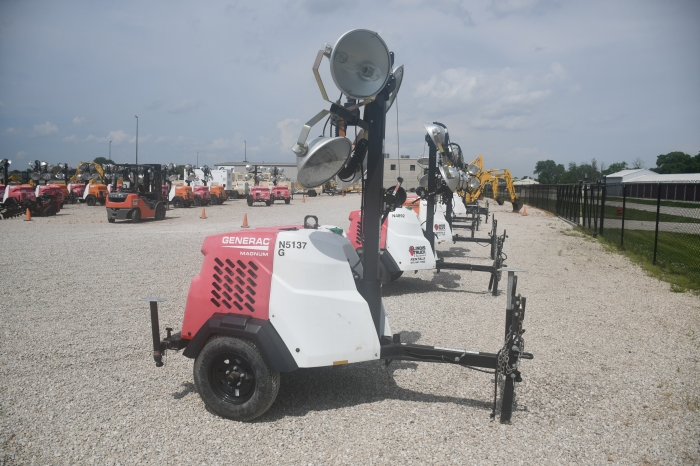 Mitsubishi L3E 12.2HP T4f diesel, Marathon 6kW single phase generator, auto start up, 4 light fixtures, 42 gallon fuel tank, 90 hour run time, 440,000 lumen, 360 degree mast, 175/80D13 tires, pintle eye, 1,500 lbs. (Stock #N5137)