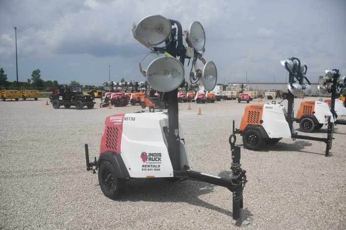 Mitsubishi L3E 12.2HP T4f diesel, Marathon 6kW single phase generator, auto start up, 4 light fixtures, 42 gallon fuel tank, 90 hour run time, 440,000 lumen, 360 degree mast, 175/80D13 tires, pintle eye, 1,500 lbs. (Stock #N5138)