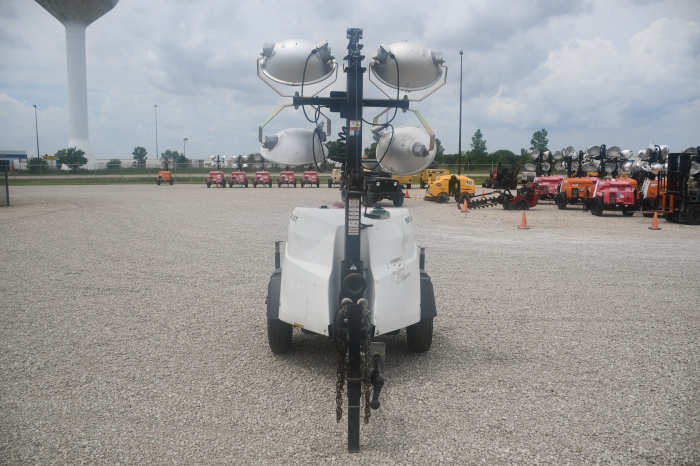 Mitsubishi L3E 12.2HP T4f diesel, Marathon 6kW single phase generator, auto start up, 4 light fixtures, 42 gallon fuel tank, 90 hour run time, 440,000 lumen, 360 degree mast, 175/80D13 tires, pintle eye, 1,500 lbs. (Stock #N5141)