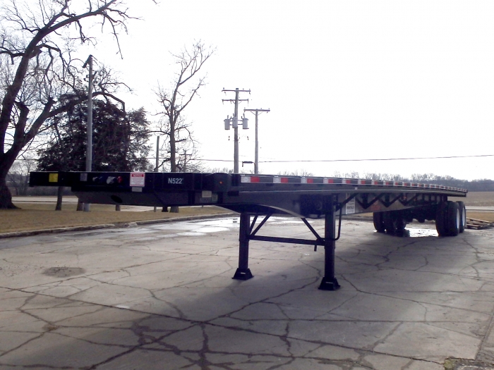 RENTAL UNIT ONLY - CALL FOR RENTAL RATES. 80,000 GVW, 48' long 8'6" wide, close center sliding tandems. 49" wheel spacing, 295/75R22.5 tires, 45,000 axles, spring ride, 2 speed jack, 1 1/8" Aptiong deck, 12" OC floor sills, 12 sliding tie down winches. (Stock #N5227)