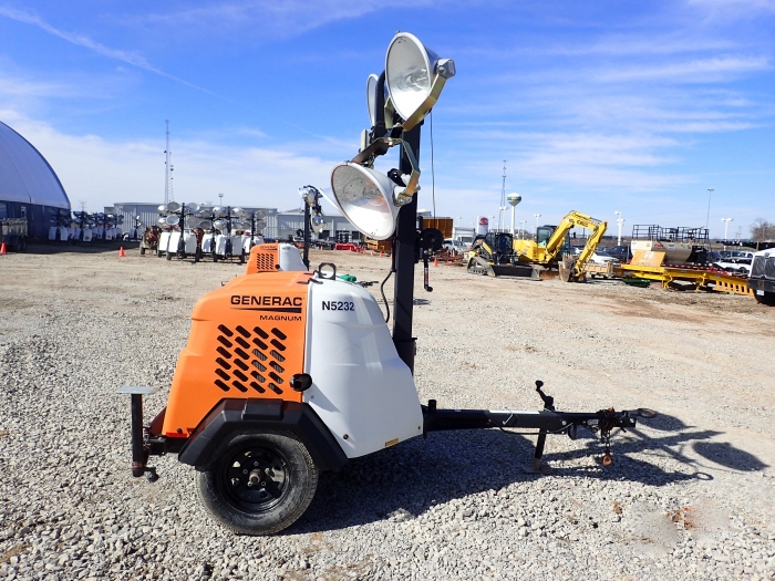 Mitsubishi L3E 12.2HP T4f diesel, Marathon 6kW single phase generator, auto start up, 4 light fixtures, 42 gallon fuel tank, 90 hour run time, 440,000 lumen, 360 degree mast, 175/80D13 tires, pintle eye, 1,500 lbs. (Stock #N5232)