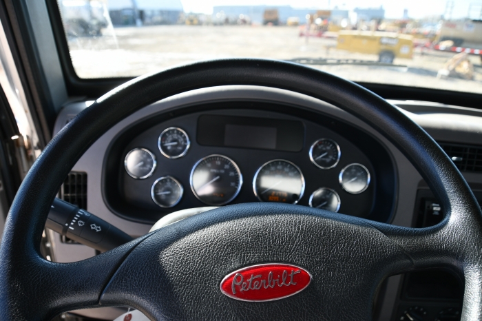 Paccar PX-9 350HP Tier 4 diesel, Allison 3000 RDS-P automatic transmission, 60,000 lb., GVWR, 20,000 lb. front, 40,000 lb. rear, 4.88 rear end, 199" WB, Peterbilt Air Trac air suspension, air brakes, double frame, dual steering box, interlocking diff., 315/80R22.5 front tires, 11R22.5 rear tires, aluminum bud wheels, exhaust brake, A/C, air ride seat, cruise control, 2018 Curry 4,000 gallon tank, 4"x3" pump, front, side and rear discharge, hose reel, top and bottom fill, air valve controls cannon ready. (Stock #N5575)