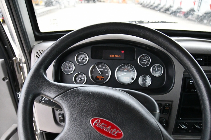 Paccar PX-9 350HP Tier 4 diesel, Allison 3000 RDS-P automatic transmission, 60,000 lb., GVWR, 20,000 lb. front, 40,000 lb. rear, 4.88 rear end, 199" WB, Peterbilt Air Trac air suspension, air brakes, double frame, dual steering box, interlocking diff., 315/80R22.5 front tires, 11R22.5 rear tires, aluminum bud wheels, exhaust brake, A/C, air ride seat, cruise control, 2018 Curry 4,000 gallon tank, 4"x3" pump, front, side and rear discharge, hose reel, top and bottom fill, air valve controls cannon ready (Stock #N5576)