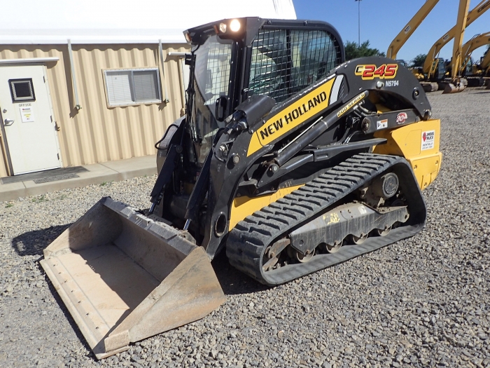 RENTAL UNIT ONLY - CALL FOR RENTAL RATES. Heat and A/C, radio, FPT/ F5BFL413E*B002 90 HP T4F diesel, E H hand controls, 2 speed, 4,500 lb. operating capacity, 17.7" rubber tracks, aux. hydraulics, high flow plus package, heavy duty hydraulic mount plate, lap bar, ride control, self-level, suspension seat, keyless start, block heater, work lights, front electric multi-function, steel hoods, heavy duty rear door, 84" bucket, 10,610 lbs (Stock #N5794)