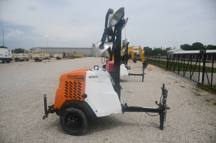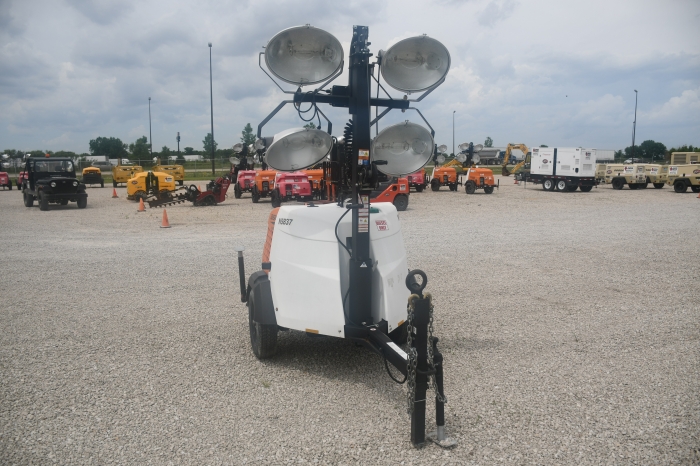 Mitsubishi L3E 12.2HP T4f diesel, Marathon 6kW single phase generator, auto start up, 4 light fixtures, 42 gallon fuel tank, 90 hour run time, 440,000 lumen, 360 degree mast, 175/80D13 tires, pintle eye, 1,500 lbs (Stock #N5837)