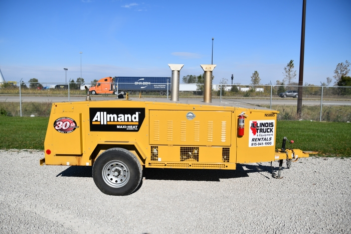 RENTAL UNIT ONLY - CALL FOR RENTAL RATES. Isuzu 3CE1 T4f 19.9HP diesel, 8kW Cummins generator, 1,030,000 BTU, 6,400 cubic ft. min., 230 F max output temp., 75 gallon tank, 30 hr. run time, 16" duct hose, 110' duct length intermittent heat, 235/80R16D tires, pintle or 2" ball, 6,000 lbs. (Stock #N5885)