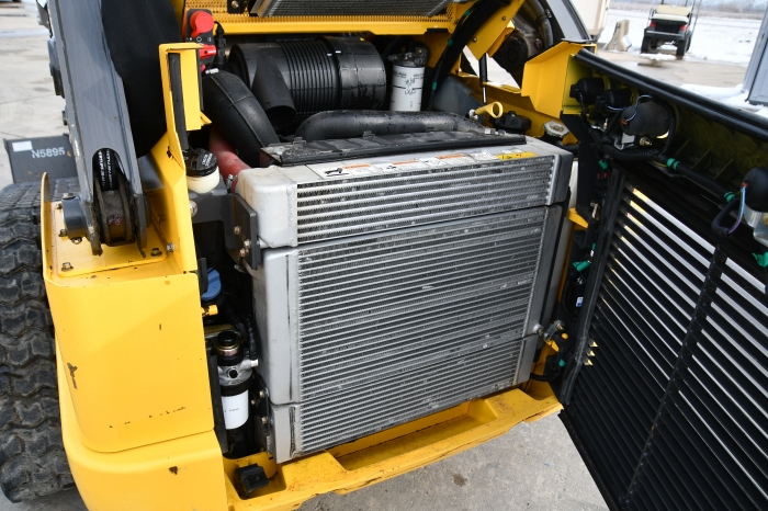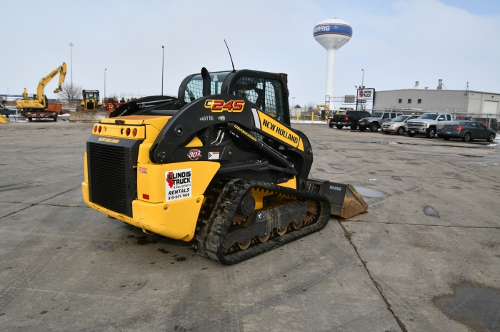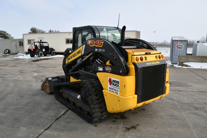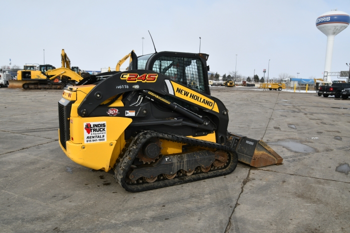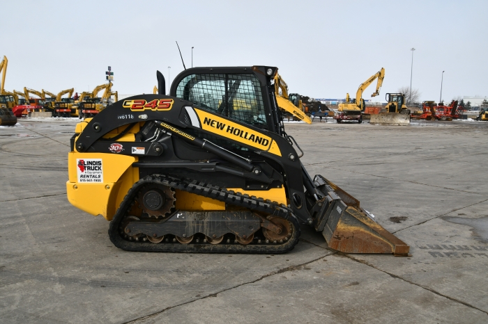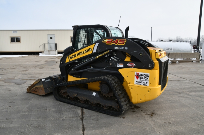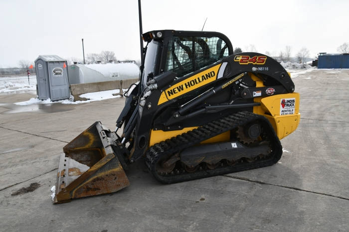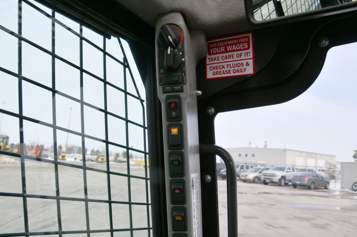 RENTAL UNIT ONLY - CALL FOR RENTAL RATES. Heat and A/C, radio, FPT/ F5BFL413E*B002 90 HP T4F diesel, E H hand controls, 2 speed, 4,500 lb. operating capacity, 17.7" rubber tracks, aux. hydraulics, high flow plus package, heavy duty hydraulic mount plate, lap bar, ride control, self-level, suspension seat, keyless start, block heater, work lights, front electric multi-function, steel hoods, heavy duty rear door, 84" bucket, 10,610 lbs. Extended Warranty 2,000 hrs. or 6/23/21, Emissions Warranty 3,000 hrs. or 6/23/24. (Stock #N6118)