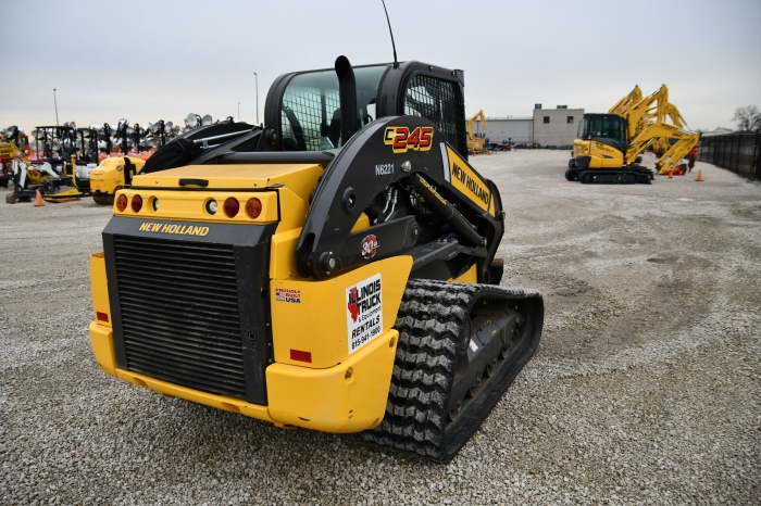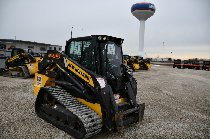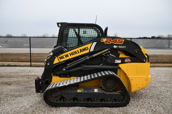 RENTAL UNIT ONLY - CALL FOR RENTAL RATES. Heat and A/C, radio, FPT/ F5BFL413E*B002 90 HP T4F diesel, E H hand controls, 2 speed, 4,500 lb. operating capacity, 17.7" rubber tracks, aux. hydraulics, high flow plus package, heavy duty hydraulic mount plate, lap bar, ride control, self-level, suspension seat, keyless start, block heater, work lights, front electric multi-function, steel hoods, heavy duty rear door, 84" bucket, 10,610 lbs. Extended Warranty 2,000 hrs. or 8/28/21, Emissions Warranty 3,000 hrs. or 8/28/24. (Stock #N6221)