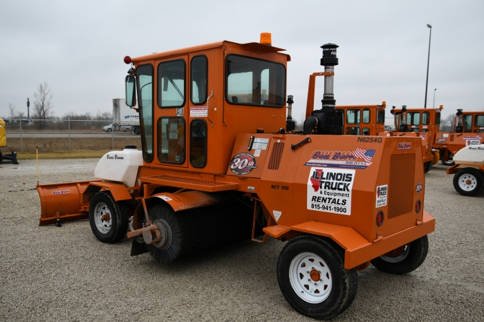 A/C and heat, Cummins QSF2.8t4 Tier4f 84.5HP diesel, 2 speed hydrostatic, 225/75R16 tires, 8' brush, 150 gallon water spray system, joystick broom controls, Hyd's and brackets for scraper blade, road lights, beacon, mirrors, scraper blade at additional cost. Warranty 1,000 hrs. or 7/22/20. (Stock #N6254)
