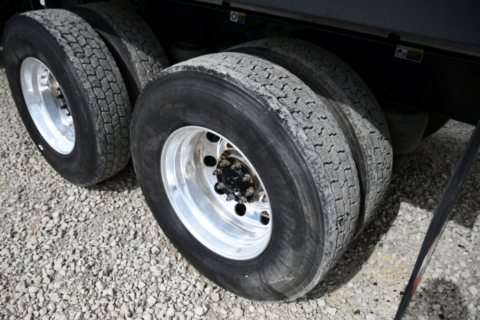 Paccar PX-9 350HP Tier 4 diesel, Allison 3000 RDS-P automatic transmission, 60,000 lb., GVWR, 20,000 lb. front, 40,000 lb. rear, 4.88 rear end, 199" WB, Peterbilt Air Trac air suspension, air brakes, double frame, dual steering box, interlocking diff., 315/80R22.5 front tires, 11R22.5 rear tires, aluminum bud wheels, exhaust brake, A/C, air ride seat, cruise control, 2018 Curry 4,000 gallon tank, 4"x3" pump, front, side and rear discharge, hose reel, top and bottom fill, air valve controls cannon ready. (Stock #N6274)