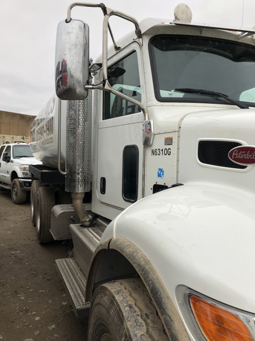 Paccar PX-9 350HP Tier 4 diesel, Allison 3000 RDS-P automatic transmission, 60,000 lb., GVWR, 20,000 lb. front, 40,000 lb. rear, 4.88 rear end, 199" WB, Peterbilt Air Trac air suspension, air brakes, double frame, dual steering box, interlocking diff., 315/80R22.5 front tires, 11R22.5 rear tires, aluminum bud wheels, exhaust brake, A/C, air ride seat, cruise control, 2018 Curry 4,000 gallon tank, 4"x3" pump, front, side and rear discharge, hose reel, top and bottom fill, air valve controls cannon ready. Mile meter indicated. (Stock #N6310)