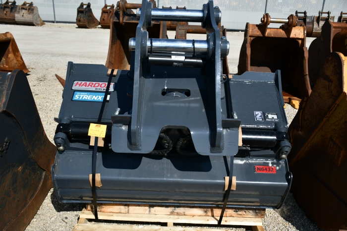 60" wide, to fit Kobelco SK210/SK235SR/SK230SR/SK270SR Excavator,45 degree tilt left and right, 1.095 yard capacity, bolt on cutting edge, dead pins, 80MM pins, 12,88" between the ears, 17.4" center to center. (Stock #N6432)