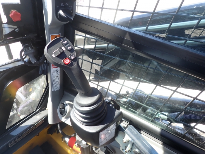 RENTAL UNIT ONLY - CALL FOR RENTAL RATES. Cab heat and A/C, radio, FTP/F5H FL463A*F001 74HP T4F diesel, E H hand controls, 2 speed, 3,700 lb. operating capacity, 17.7" rubber tracks, aux. hydraulics, heavy duty hydraulic mount plate, lap bar, ride control, self-level, air suspension seat, keyless start, block heater, work lights, front electric multi-function, steel hoods, heavy duty rear door, 78" bucket. 9,945 lbs. (Stock #N6780)