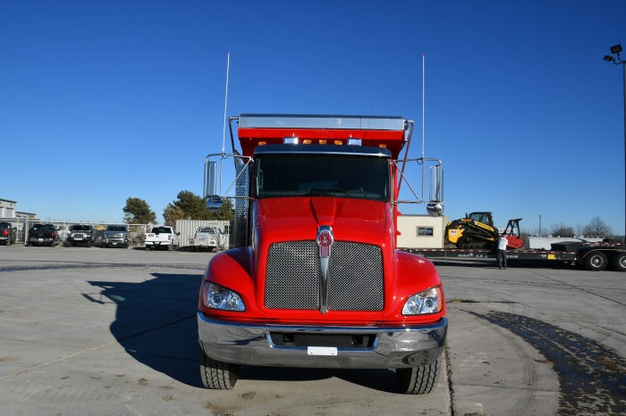 RENTAL UNIT ONLY - CALL FOR RENTAL RATES. A/C, Paccar PX9 330HP T4f diesel, Allison 3500RDS auto trans, 60,000 GVW, 20,000 front, 40,000 rears, 5.29 differentials, 198" wheel base, Hendrickson Haulmax suspension, air ride seat, heated mirrors, engine brake, diff lock, power windows, power locks, block heater, cruise control, 315/80R22.5 front tires, 11R22.5 rear tires, aluminum buds, 15' Bibeau dump box, high lift tailgate, pintle hitch, rear air lines, electric tarp. (Stock #N6838)
