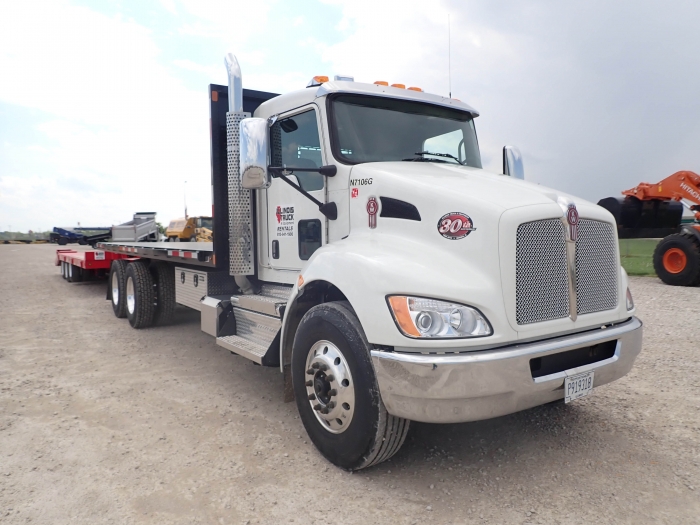 RENTAL UNIT ONLY - CALL FOR RENTAL RATES. Paccar PX-9 330HP T4F diesel, Allison 3500RDS automatic transmission, 56,000 lb. GVWR, 16,000 lb. front, 40,000 lb. rears, 4.36 rear ends, 260" wheel base, 315/80R22.5 front tires, 11R22.5 rear tires, aluminum budd wheels inner and outer, 24'x96" wide flatbed, single frame, Paccar air bag suspension, air ride seat, air ride cab, exhaust brake, cruise, power windows & locks, power mirrors, heated mirrors, dual diff lock, block heater, rear pintle, rear air, rear electric brake controller, side tool box, battery shutoffs (Stock #N7106)