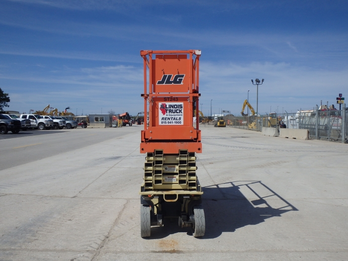 RENTAL UNIT ONLY - CALL FOR RENTAL RATES. Electric Scissor Lift, 25' 6" platform height, 2'8" wide, 7' 7" long, 3 platform extension, non-marking tires, 4,635 lbs. Warranty 3,000 hr. or 2/8/21. (Stock #ST243)