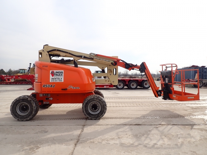 RENTAL UNIT ONLY - CALL FOR RENTAL RATES. Articulated Boom Lift, Deutz D2.9L4 Tier 4 49HP diesel, 45' platform height, 4WD, 2 wheel steer, Sky Power, 6' basket, 6' jib, 33/1550x16.5 tires, 45% gradability, 14,200 lbs. Warranty 3,000 hrs. or 1/25/22. (Stock #ST332)