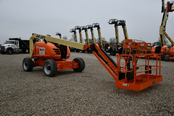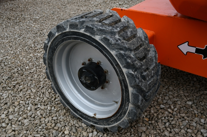 RENTAL UNIT ONLY - CALL FOR RENTAL RATES. Deutz TD2.9L4 T4f diesel, 67HP, 60' 7" platform height, 6 ft jib, 8' basket, 4 wheel drive, 2 wheel steer, Sky Power, Air-line to basket, IN355/55D-6.26 tires, 45% grad-ability, glow plugs, 23,500 lbs. (Stock #ST358)