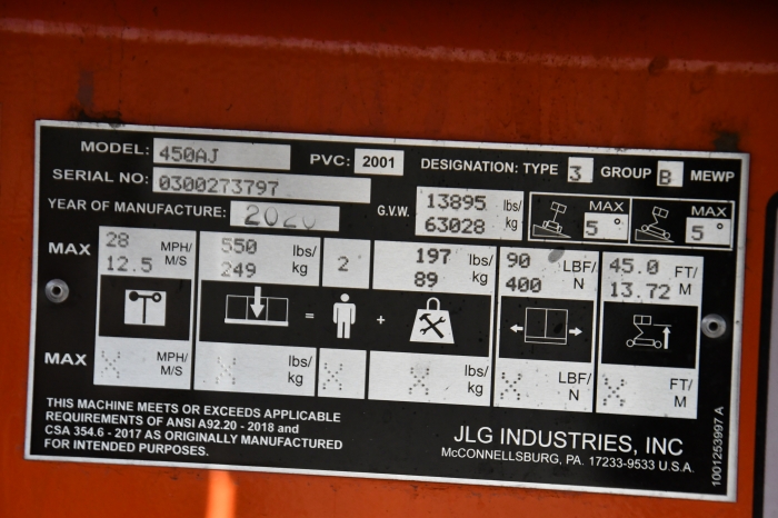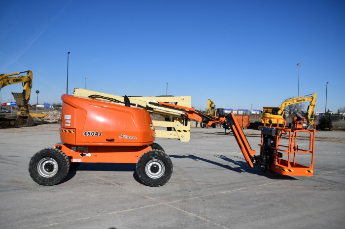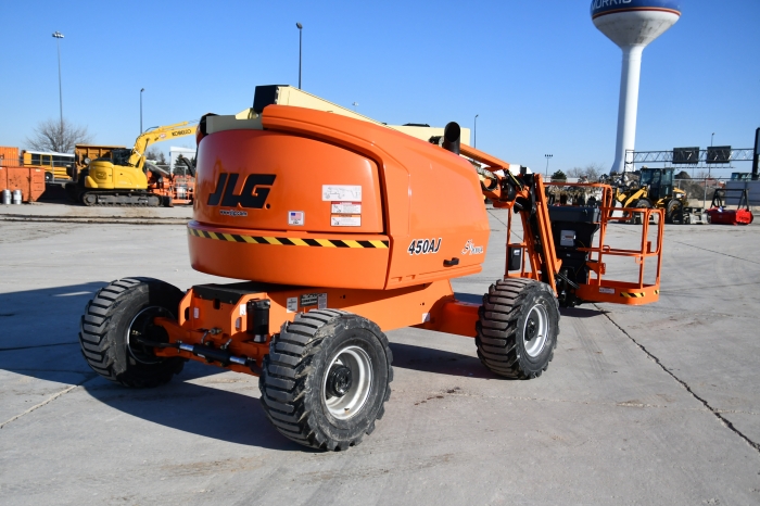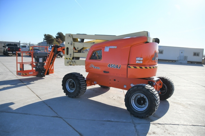 RENTAL UNIT ONLY - CALL FOR RENTAL RATES. Articulated Boom Lift, Deutz D2.9L4 Tier 4 49HP diesel, 45' platform height, 4WD, 2 wheel steer, Sky Power, 6' basket, 6' jib, 33/1550x16.5 tires, 45% gradability, 14,200 lbs. (Stock #ST387)