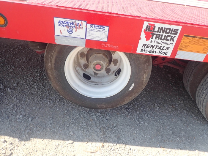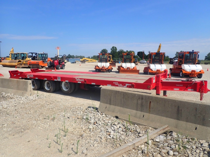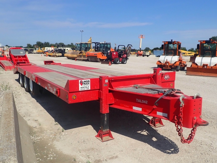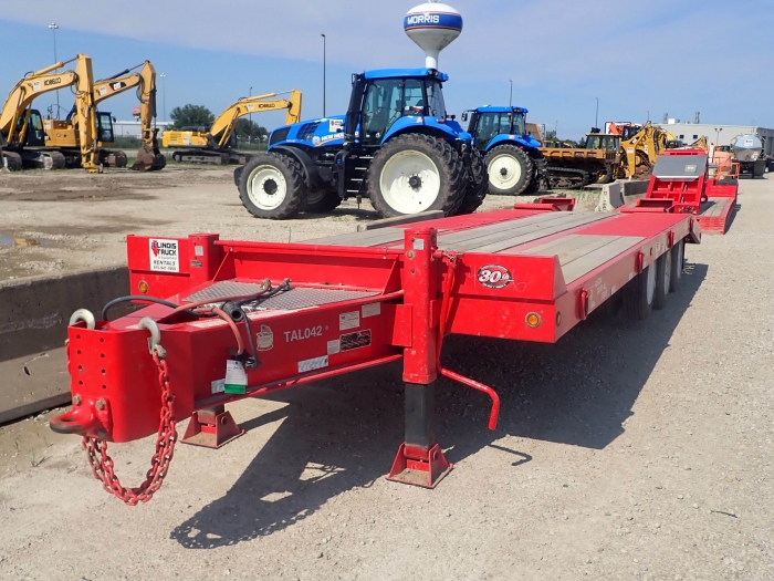RENTAL UNIT ONLY - CALL FOR RENTAL RATES. 50,000 lbs. capacity, 63,200 GVW, 24' top deck, 5' self cleaning beaver tail, 5' self cleaning ramps, 32.75" deck height, air lift front axle, (30) 22,500 Dexter axles, air brakes, 215/75R17 tires, 1.5" apitong deck, 8 rings, 2 speed jack, LED lights, anti-long brakes, pintle eye, lockable tool box, plus FET. (Stock #TAL042)