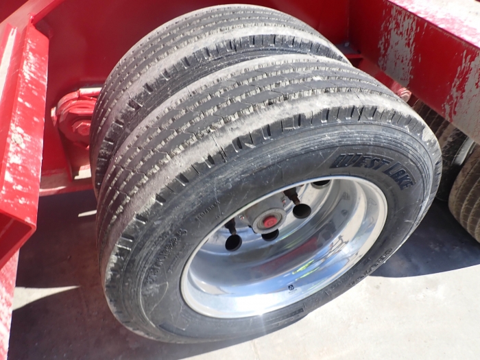 RENTAL UNIT ONLY - CALL FOR RENTAL RATES. 55 ton, 25' 6" well, 102" wide, non-ground bearing, 275/70R22.5 tires, air lift 3rd axle, air ride, 108" swing, adjustable ride height, 54" wheel spacing, front chain basket, D rings, outriggers, aluminum outer budd wheels, pinned for flip 4th axle, 3/8" from beam transition doublers, slope front of deck top down, heavy duty front folding ramps, covered boom well. 2" apitong deck. 3 marker lights each side, 2 rear strobe lights, battery backup flasher system, 22,500 EW. (Stock #TAL059)